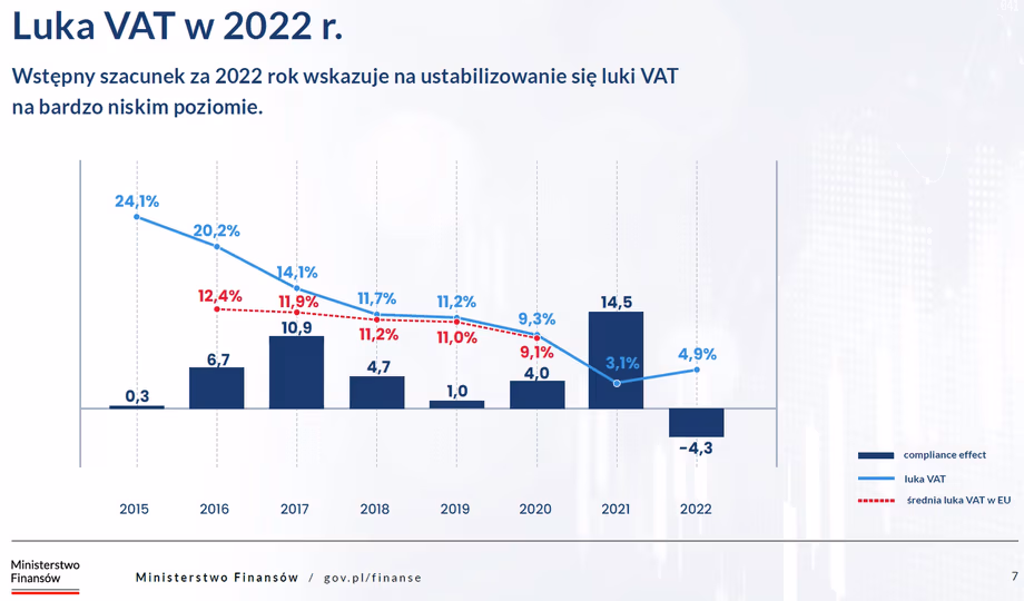 "Nadzór Ministra Finansów w latach 2007–2015 był systematyczny, ale za mało skuteczny i nie zdołał zapobiec gwałtownemu wzrostowi luki VAT. Dopiero rozwiązania przyjęte w latach 2016–2018 uszczelniły system podatkowy."