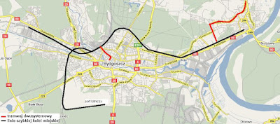 Jak wyobrażają sobie tamtejsze władze sukces połączenia Bydgoszcz- Toruń z tak peryferyjnym przebiegiem linii kolejowej przez miasto? A to chyba kluczowe pytanie dla przyszłości regionu. Ta linia byłaby bardzo dochodowa gdyby wprowadzono na nią tramwaje dwusystemowe. Tak samo linia do Fordonu- jaka jest przeszkoda by i na niej wprowadzić tramwaj dwusystemowy wjeżdżający do centrum Bydgoszczy, a także do wewnątrz tej dzielnicy? A połączenie linią SKM do bydgoskiego portu lotniczego? Tramwaj dwusystemowy zapewniłby bezprzesiadkowe połączenie do centrum miasta. W przyszłości myślę o reaktywacji połączenia do Świecia, możliwe jest też połączenie do Osowej Góry wjeżdżające dzięki tej technologii do centrum miasta. Załączam stosowną propozycję graficzną.