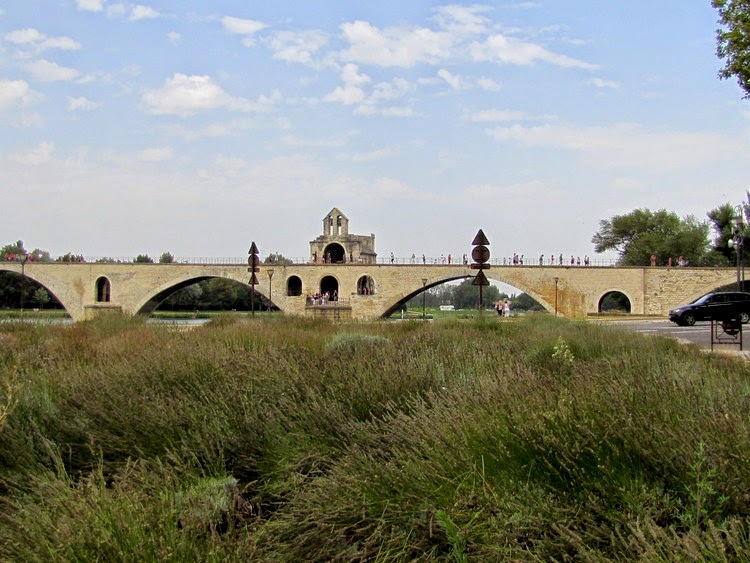 Pont Saint -Benezet - Most Świętego Bezeneta został wybudowany w latach 1177 -1185 na rzece Rodan. Dlaczego taka nazwa? Wg legendy budowniczym mostu był święty Benezet (Benedykt)... Pasąc swoje owce pewnego razu usłyszał głos Anioła, który oświadczył mu, że ma misję do spełnienia... Nad Rodanem powinien zbudować most... Nie zastanawiając się, podążył do biskupa Awinionu... Ten, wysłuchawszy pastuszka wydrwił go... Rzeka jest ogromna a miasto nie posiada funduszy... Polecił, że ma udowodnić, iż jest to wola Boża... Benedykt podniósł ogromny blok skalny, którego nie uniosłoby 30 mężczyzn... Wtedy uwierzono, że jest to cud... Mimo różnych trudności, most został zbudowany... Miał 920 metrów długości i 4 metry szerokości.. Składał się z 22 kamiennych, półkolistych przęseł o rozpiętości 33 metrów...