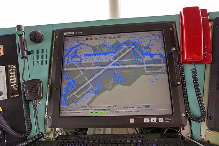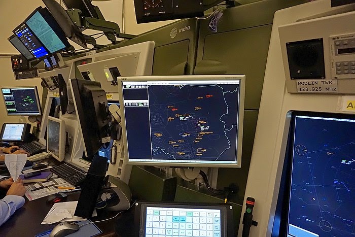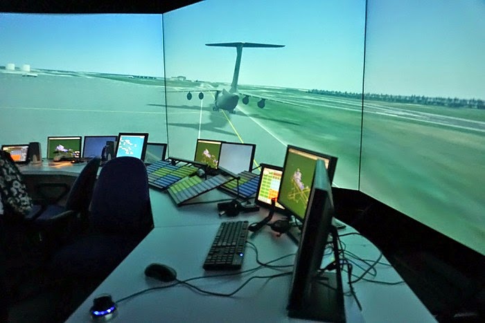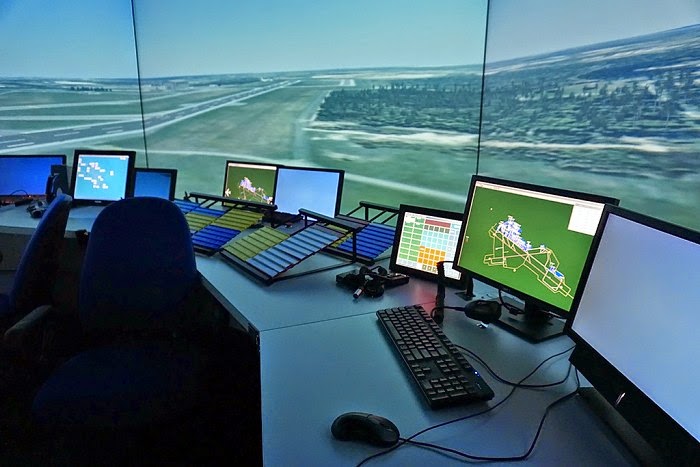 Podczas naszej wycieczki zwiedziliśmy także symulator warszawskiej wieży(Tower/TWR), które mogą być urządzeniami pracującymi samodzielnie, ale częściej są połączone z systemami symulatorów kontroli radarowej. Współczesne systemy symulacyjne muszą umożliwiać niezależne odwzorowanie środowiska pracy różnych służb kontroli ruchu lotniczego w wielu przestrzeniach powietrznych jednocześnie.