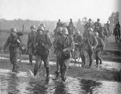 W tej kompanii ranek 1.wrzesnia wygladal tak - piechota, rowerem i konno przez rzeke Orszyc: