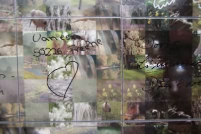Wszyscy widza? Slawa Kanczeva z Sofii! Kot sklada sie z malych zdjec z autografami i notatkami wedrowcow.