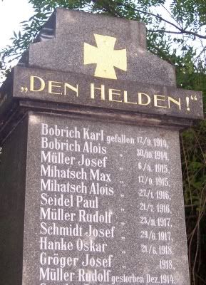 Otoz za wsia stoi sobie na trawniku pomnik. Pomnik poleglych z I wojny swiatowej.