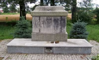 Ja, mimo, ze przejezdzalem obok pomnika jadac do wsi, wcale go nie zauwazylem. Dopiero pytajac zyczliwych ludzi we wsi, dowiedzialem sie, ze za wsia i ze juz tam bylem. Z dala od glownej drogi, miedzy drzewami.