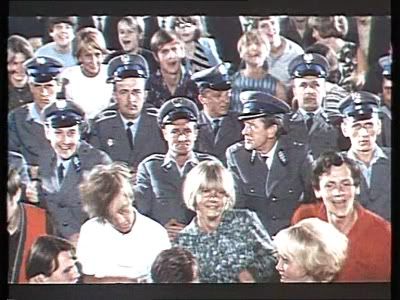 Milicjanci na koncercie Johnny'ego Tomali i Niebiesko-Czarnych (akurat niebiesko-czarnych, pasuje jak ulal!).