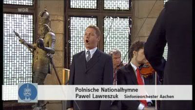 Polski hymn spiewany przez spiewaka akwizgranskiej orkiestry symfonicznej: