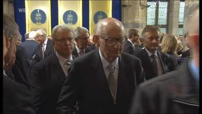 Sale po imprezie opuszcza profesor Wladyslaw Bartoszewski, pana rezysera Andrzeja Wajdy nie zauwazylem, ale slyszalem jak go witano.