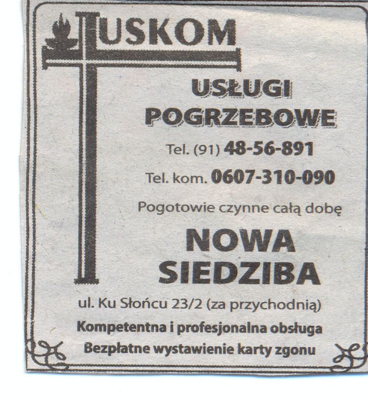 Swoisty epilog moich przygód rozegrał się w Szczecinie. Czekając na autobus do Sassnitz, skąd miałem prom do Trelleborga, w dworcowym kiosku kupiłem „Głos Szczeciński”, w którym w dziale ogłoszeń znalazłem anons jak powyżej: