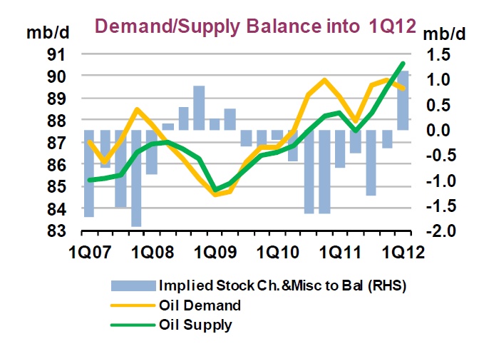 b) cena ropy powinna od początku kwartału i roku 2012 spadać i to mocno, a ta utworzyła nowy szczyt w lutym!!!