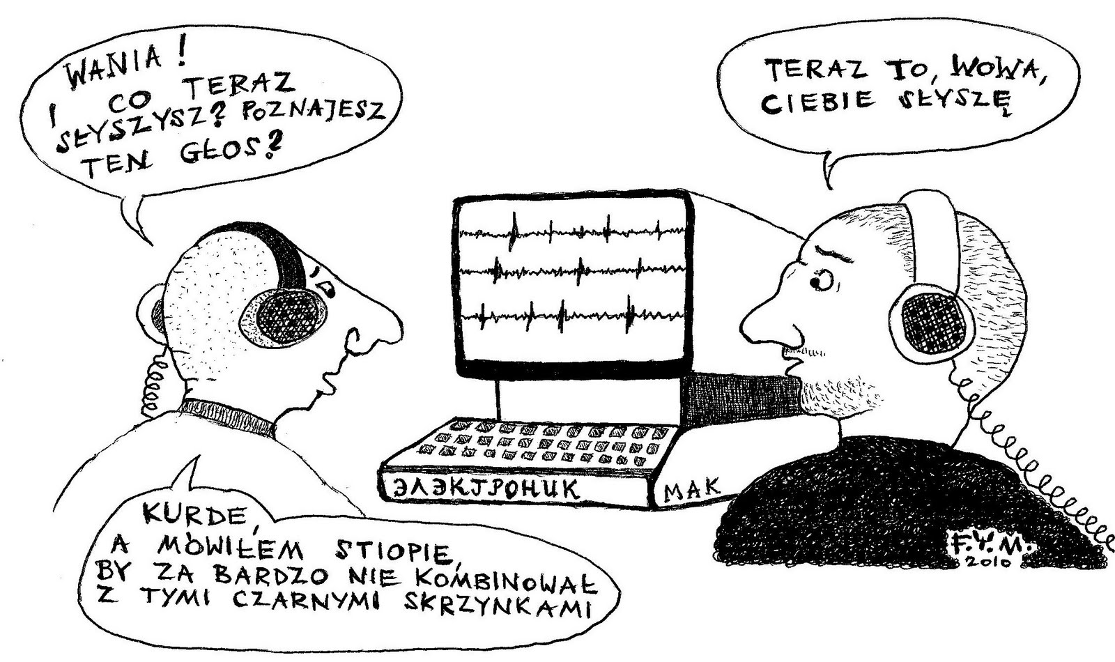 https://yurigagarinblog.wordpress.com/2014/02/03/komplet/ (pod tym adresem dostępne są moje przeróżne opracowania z "Czerwoną stroną Księżyca" i aneksami do niej włącznie); polecam jeszcze tę moją analizę z 2024 r. zamieszczoną gościnnie u prof. M. Dakowskiego: https://dakowski.pl/wokol-hipotezy-dwoch-miejsc-free-your-mind/ ) legendarne dialogi piwniczne ludzi zapiwniczonych w Irlandii 2 (before you read me you gotta learn how to see me) free your mind and the rest will follow, be colorblind, don't be so shallow "bot, który się postom nie kłania" [Docent Stopczyk] "FYM, to wesoły emeryt, który już nic, ale to absolutnie nic nie musi już robić" [partyzant] "Bot FYM, tak jak kilka innych botów namierza posty i wpisy "z układu" i daje im odpór" [falstafik] "Czy robi to w nocy? W takim razie – kiedy śpi? Bo jeśli FYM od rana do późnej nocy non-stop tkwi przy komputerze, a w godzinach ciszy nocnej zapewne przygotowuje sobie kolejne wpisy, to kiedy na przykład spożywa strawę?" [Sadurski] "Ale teraz zadam Sadurskiemu pytanie: Załóżmy, że "wyśledzi" pan w przyszłości jeszcze kilku FYM-ów, a któryś odpowie prostolinijnie, że jest inwalidą i jedyną jego radością (z przyczyn wiadomych) jest pisanie w S24, to czy pan będzie domagał się dowodów,czy uwierzy na słowo?" [osa 1230] "Zagrożenia dla pluralizmu w ramach Salonu widzę w tym, że niektórzy blogerzy - w tym właśnie FYM - wypraszają ludzi, z którymi się nie zgadzają. A zatem dojdzie do "bałkanizacji" Salonu: każdy będzie otoczony swoją grupką zwolennikow, ale nie będzie realnej dyskusji w ramach poszczególnych blogów. Myślę, że nie daję przykładu takiego wykluczania." [Sadurski] "Już nawet nie warto tego bełkotu czytać, spod jednego buta i z jednego biura. Na fanatyków i pałkarzy lekarstwa nie ma."[Igła] "FYM już kupił S24 swoim pisaniem, jest teraz jego twarzą. Po okresie Galby i katatyny nastąpił czas dziennikarzy "Gazety Polskiej". Ten przechył i stalinopodobne teorie spiskowe, jakie się wylewają z jego bloga oraz innych mu podpbnych - przyciągają do Salonu nastepnych i następnych. Tu już od dawna nie zależy nikomu na rzetelności i klasie pisania - lecz na tym, aby było klikanie, aby było głośno i kontrowejsyjnie. Promowanie takich ludzi jak FYM i Paliwoda - jest całkowicie jednoznaczne."[Azrael] "Ale jaki jest problem?"[Kwaśniewski] kwestia archiwów IPN-u Janke: "Nigdy nie mówiliście o pełnym otwarciu?" Komorowski: Co to znaczy otwarcie?" "Trudno zrozumieć, jak można ogłupić społeczeństwo. Dlaczego tylu ludzi ośmiela się nazywać zdrajcą Wojciecha Jaruzelskiego. (Edmund Twardowski, Warszawa) " [tzw. listy czytelników do "Trybuny"] "Z przykrością stwierdzam, że prezydent nie przedstawił żadnych propozycji ws. służby zdrowia" [Tusk] "Niewidzialna ręka rynku, jak sama nazwa wskazuje, jest ślepa." [ekspert w radiowej audycji prowadzonej przez R. Bugaja] "Mamy otwarte granice, miejmy też otwarte umysły. Jasna Góra horyzontów rządowi i parlamentarzystom nie rozszerzy. (S. Barbarska, woj. wielkopolskie) " [tzw. czytelniczka "Trybuny"]