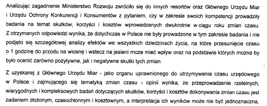 Innymi słowy z jednej stron, rząd twierdzi że nie ma badań, a z drugiej że takich badań się nie prowadzi i nie będą prowadzone, bo podobno nie będą jednoznaczne. Dodajmy, że żadnych takowych badań gdy wprowadzono czas letni w Polsce również nie przeprowadzono, a zatem...