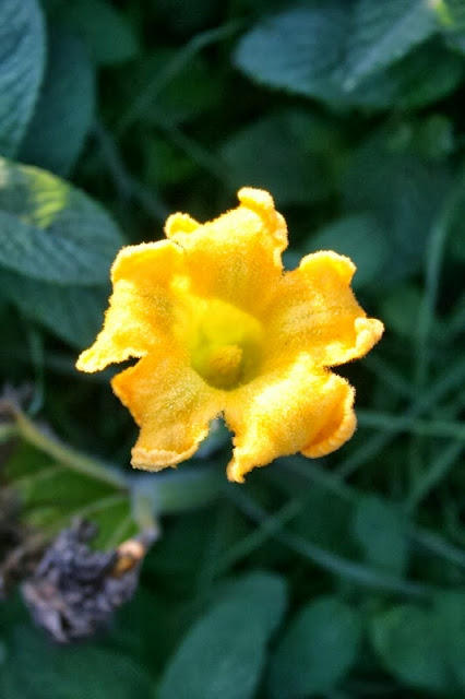 Wczoraj, że było zbyt mokro, aby cokolwiek innego zrobić, wypieliłem ostatni nie zajęty przez dynie fragment ogródka. Dynie bodaj trzeba by już powoli zbierać - ale się do tego nie palimy. Raz, że i tak nie mamy tego gdzie składować - a że NIE WIERZĘ w możliwość ich spieniężenia, to wciąż mam nadzieję, że większość (przynajmniej - wagowo..!) uda się po prostu rozdać odwiedzającym nas gościom: