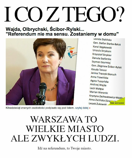Prezydent Komorowski proponuje zaporowe, "wysokiego progu", frekwencje w referendach odwoławczych, żeby uniemożliwić odwołanie "delikwenta", z powodu niskiej frekwencji wyborczej (za wysokie dla was progi). Wiecie przecież, demokracja musi być!". / A my na to; To przecież "prezydencka, zadekretowana anarchia". / "Włodarz - głupol" nic nie zrobi i mieszkańcy też ! - To ja się teraz, przed referendum w Warszawie ( 13.X.13 r. ), pytam Platformy: Jaka jest diagnoza; - "Bul w dupie" to niegroźny hemoroid, czy złośliwy rak ? - A może to "Bronkowe Liberum Veto", bo demokracji, to ja tam nie widzę? *** CAŁOŚĆ / PODAJ DALEJ >> www.kacpro.blogspot.com