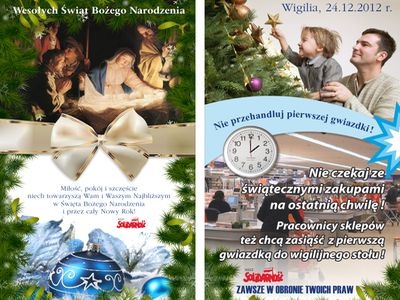 Sekcja Krajowa Pracowników Handlu NSZZ Solidarność wystosowała list otwarty do zarządów sieci handlowych o skrócenie czasu pracy w Wigilię Bożego Narodzenia do godz. 14.00. To już kolejna edycja prowadzonej od wielu lat akcji „Nie przehandluj pierwszej gwiazdki”.