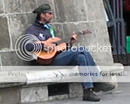Turysci rzucaja monety na srodkowy ganek, to my tez, korona tania jest. Mlody wygral, dorolowal monete az do oltarza.