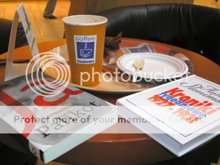 Rynek. Zaczynam pytac o ksiegarnie. Mlody pan z ulotkami knajpki na Golebiej instruuje mnie, gdzie ktore sa. Dopiero w piatej, o hinduskiej nazwie, udaje mi sie zdobyc ksiazke "Ja, Palikot". I nawet Slonimskiego mozna kupic bez kartek.