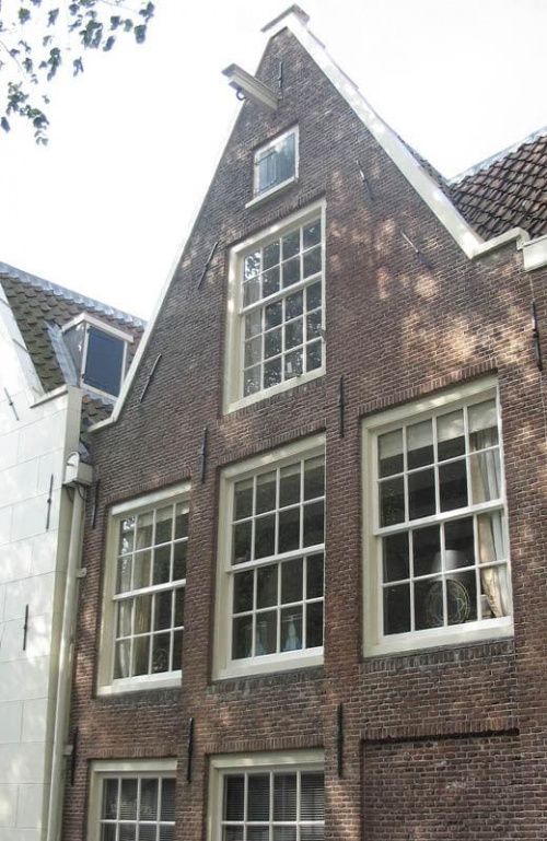 Amsterdam jako miasto portowe, pozostawiło też na swoich domach ślady dawnych portowych urządzeń - spójrzcie na szczyt elewacji..
