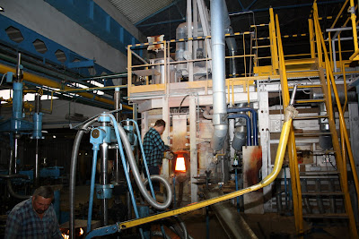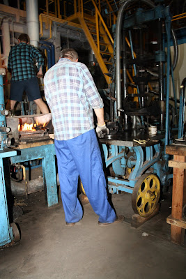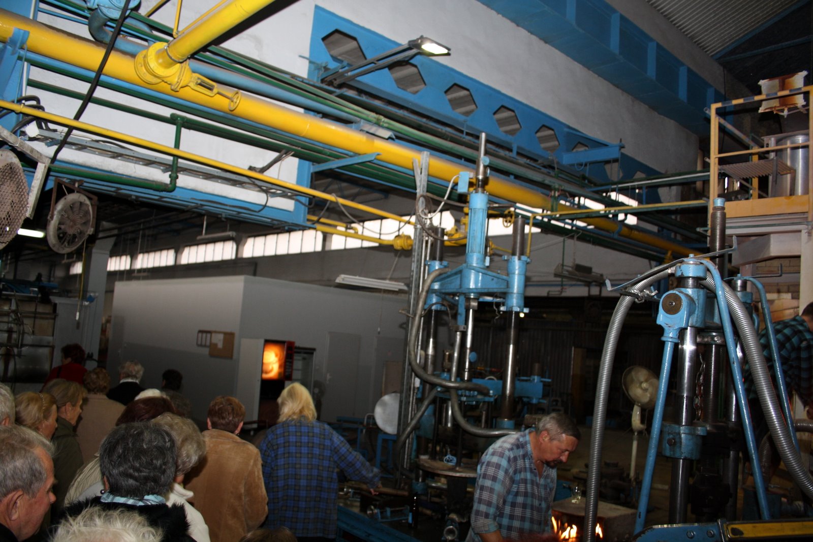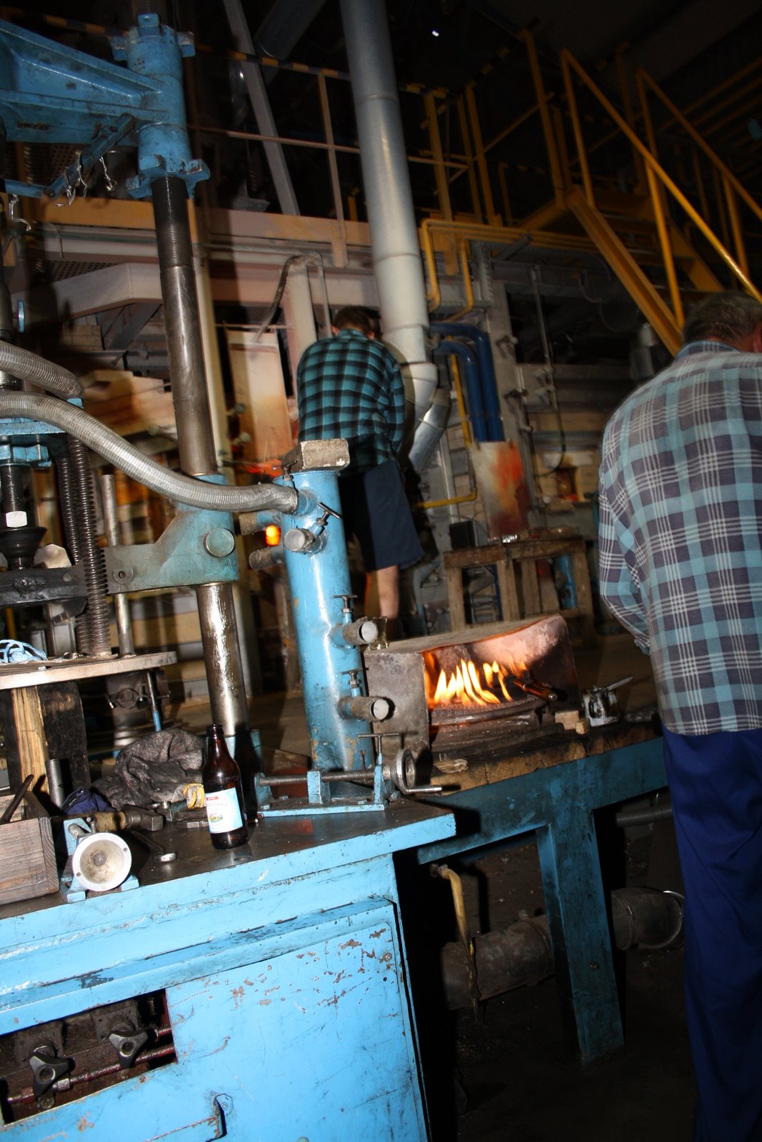 Zobaczą narzędzia jakie stosowane są przy ręcznym formowaniu (dmuchaniu) wyrobów kryształowych oraz automatyczną linię formowania szklanek i kieliszków oraz pracę automatu zdobniczego.