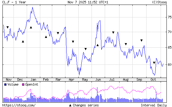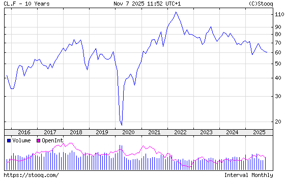 Poniżej wykres dzienny cen ropy amerykańskiej w $ za baryłkę z portalu stooq.com