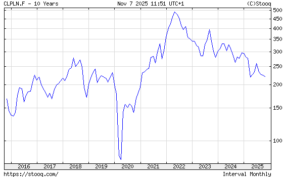 Warto jeszcze spojrzeć na ceny za baryłkę ropy w naszej walucie w złotych: