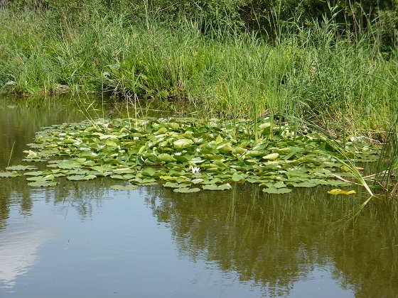 Skupisko grzybieni na powierzchni wody.