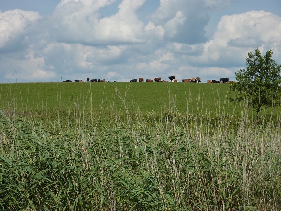Po lewej mijamy łąkę wyglądającą prawie jak pulpit Windows, dla odmiany z krowami.
