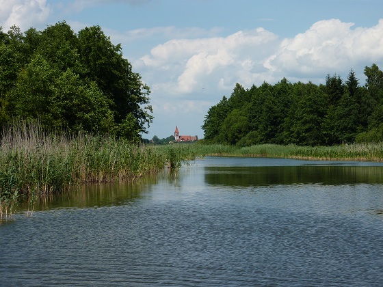 Postanowiliśmy zrobić szybkie zakupy w Zalewie. Miasteczko to leży nad jeziorem Ewingi, połączonym niezbyt długim kanałem Dobrzyńskim z północnym krańcem Jezioraka. Jak wszystkie drogi wodne w tamtych rejonach, również i ten szlak zachwyca malowniczością i 'dzikością' krajobrazu.