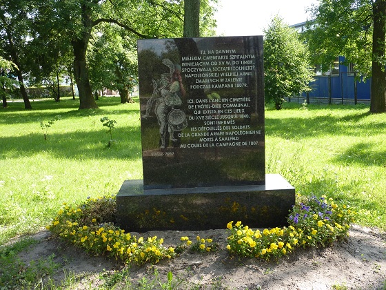 Na skwerze w pobliżu sklepu, w którym zaopatrujemy się w niezbędną żywność, zauważamy tablicę upamiętniającą żołnierzy armii napoleońskiej zmarłych i pochowanych tutaj podczas kampanii w 1807r. Kwaterowały tu wówczas wojska generała Henryka Dąbrowskiego, sam cesarz spędził w Zalewie jedną noc.