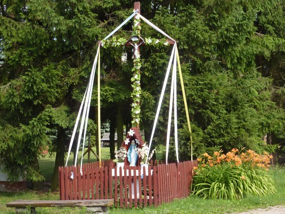 Dochodzimy do centrum wsi. Na rozstaju w lewo...