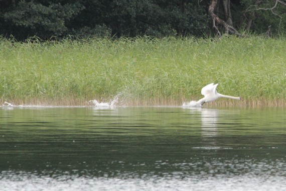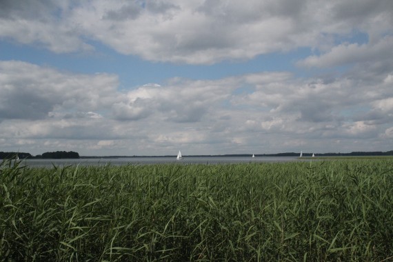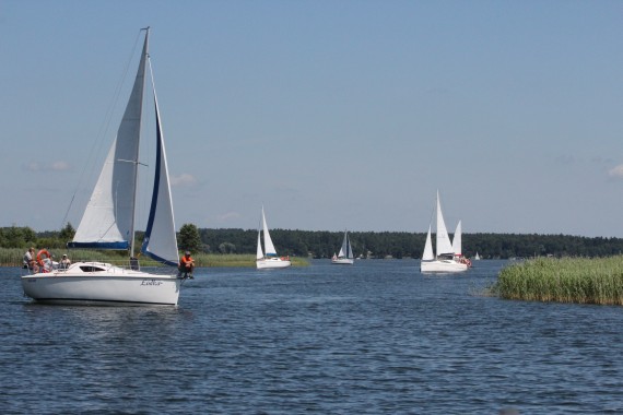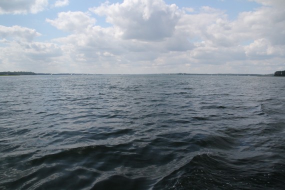 W drodze na północ nie ośmieliłam się wyciągnąć aparatu na Darginie, silny wiatr i zafalowanie jeziora sprawiły, że wolałam odłożyć go w bezpieczne miejsce i trzymać się mocno obiema rękami. Parę dni później wiatr, choć też silny, już nie dawał się tak we znaki, wiał równo, bez gwałtownych podmuchów, a słońce wyglądające często zza białych, pędzących po niebie chmur rozjaśniało i rozgrzewało chwile spędzane na pokładzie. Wreszcie można było rozkoszować się żeglarstwem jak należy i podziwiać wspaniałą przestrzeń wód. Kręcąc się tu i ówdzie po jeziorze minęliśmy się z łódką o nazwie "Łódka", widzieliśmy start z wody i napotkaliśmy prawdziwego Iron Man'a.