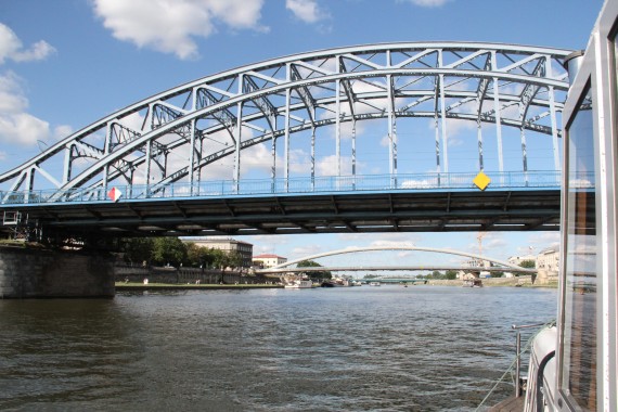 Mijamy kolejne mosty. Na pierwszym planie najstarszy z nich - most Piłsudskiego.