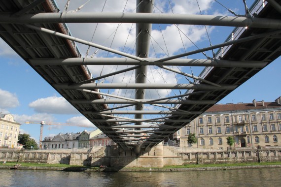 Kładka Bernatka, czyli krakowski most zakochanych - wciąż się nieźle trzyma, mimo ciężaru odpowiedzialności za miłosne uczucia, który zrzuciło na niego - w postaci przypiętych doń kłódek - setki, a może nawet tysiące zakochanych par.