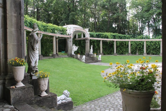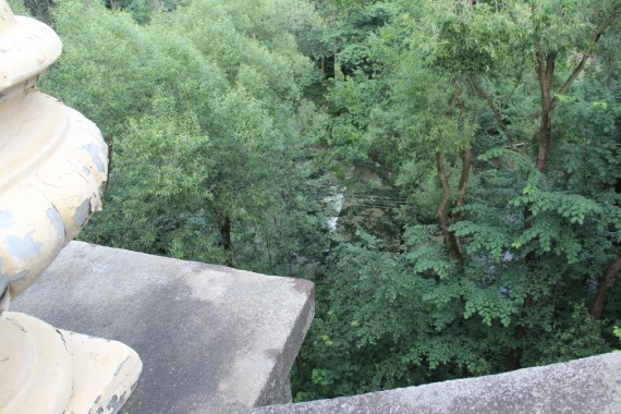 Aby uchronić taras przed zerwaniem, urwisko wzmocniono potężnym betonowym murem oporowym. Podobno jednak stan tego muru pozostawia wiele do życzenia, tak więc taras, a wraz z nim i pałac, znajduje się na kolejnej krawędzi.