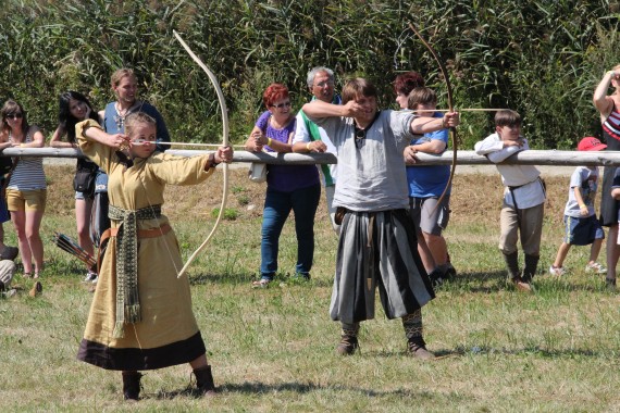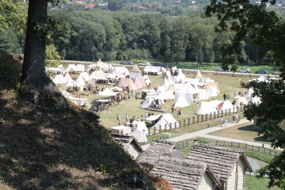 Upał dał nam się już trochę we znaki, nie czekając więc na rozstrzygnięcie zawodów poszliśmy zwiedzać grodzisko. Skansen powstał w miejscu, gdzie odkryto pozostałości ufortyfikowanej osady z epoki brązu sprzed 4000 lat, osadę kultury otomańskiej z okresu XVII-XVI w.p.n.e. oraz gród słowiański z VIII-XI w.n.e. Jest to jedno z najważniejszych stanowisk archeologicznych w Polsce, w którym odkryto ponad 160 tysięcy bardzo cennych, zabytkowych przedmiotów.
