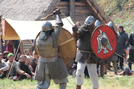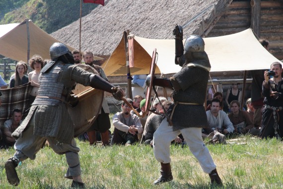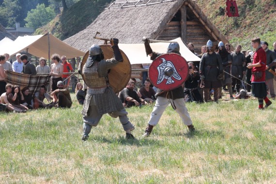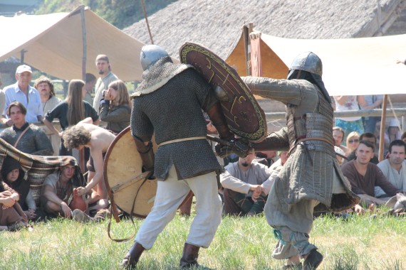 Następnym punktem programu miały być walki rycerskie. Chętni stawania w szranki ściągali już z pobliskiego obozowiska. O tym, że ciosy w takich turniejach nie są markowane świadczy zarówno stan tarcz, które zapewnie niejeden taki turniej pamiętają, jak i przezorność organizatorów, którzy zapewnili zawodnikom bliskość pomocy medycznej, o co pewnie trudniej było w średniowieczu.
