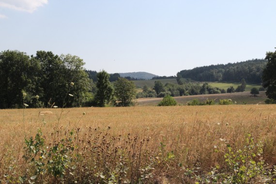 Droga z Siar do Owczar nie wydaje się długa, gdy się jedzie palcem po mapie, ale w takim upale, gdy trzeba pokonywać po kolei górki, a do sportowców wyczynowych się nie należy i kondycji brakuje, to szybko zaczyna się sapać jak lokomotywa, pot spływa strumieniami, a oczy wypatrują miejsc, gdzie można by choć na chwilę przystanąć, łyknąć trochę wody i złapać oddech. Okazje ku temu trafiały się na szczęście gęsto - i chwała Bogu! A także ludziom, którzy przed wielu laty też Go tu chwalili i na Jego chwałę te krzyże i kapliczki postawili.