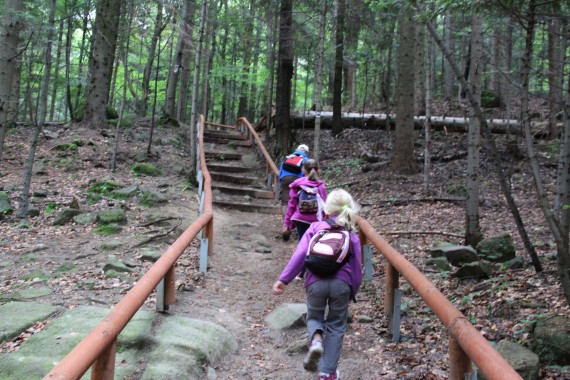 Po jednym deszczowym dniu pogoda zrobiła się wymarzona na wycieczki piesze. Zachmurzone niebo często pozwalało przedrzeć się promieniom słońca, ale upał już się skończył i jeśli komuś robiło się gorąco, to przyczyną mogła być jedynie wędrówka. Zaczęła się ona od dodatkowej, nieprzewidzianej atrakcji, która wszystkie dzieciaki wprawiła w dobry humor. Zaraz na początku bowiem, gdy tylko szlak odbił od drogi, trzeba było przeprawić się na drugą stronę rzeczki Kłopotnicy. A pokażcie mi dziecko, które nie lubi skakania po kamieniach?