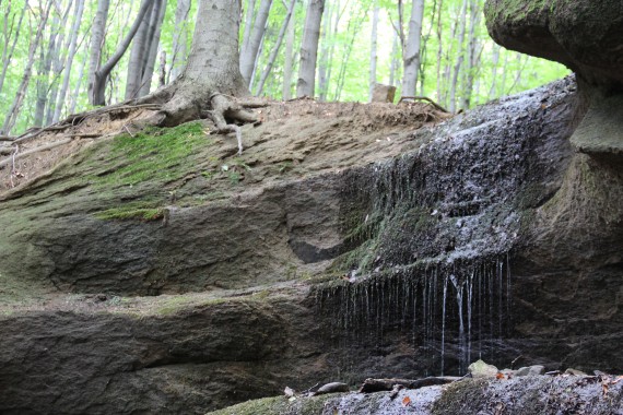 Woda w wodospadzie Magurskim, ponoć największym w tej części Beskidu Niskiego, ledwie ciekła.