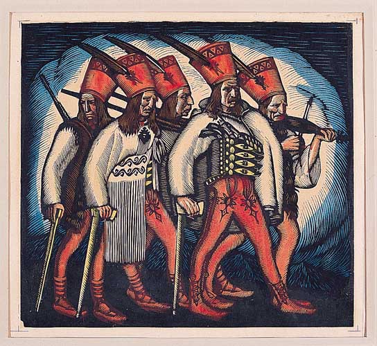 Trzeci typ wizerunków, zresztą najliczniejszy, przedstawia rodzaj czapy przypominającej indiański pióropusz.