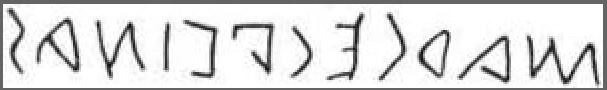 Drugie słowo jest jednak wymyślnie zaszyfrowane w etruskiej literze „M”, tak jak widać to na tym rysunku.