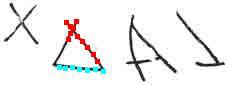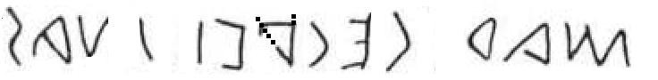 Widzimy że piszący w przemyślny sposób manipuluje tu kreskami w tej literze tak, aby ukryć to, że składa się ona tak naprawdę aż z trzech rożnych liter. Z etruskiego „U”, „T” i „I”.