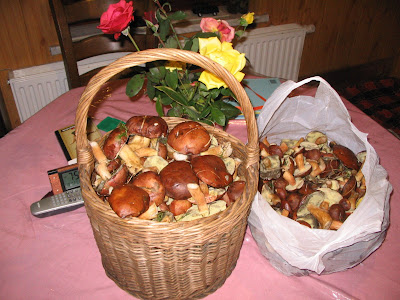 Wsiadłem a rower z koszem i reklamówką w kieszeni. Było to popołudniem. Wszedłem do lasu o godz 18.00. O 19.00 miałem tyle grzybów, że kosz był pełen a reklamówka była na granicy wytrzymałości "uszów". I to nie koniec, grzyby miałem wokoło - żal było odchodzić nie zebrawszy ich.