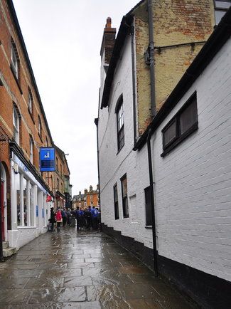 Do miasteczka dotarłem droga A515 od północy jak Jakobita jakiś, od razu wyczułem, że w miasteczku pachnie powstaniem ponieważ wszystkie sklepy były pozabijane deskami. Po krótkiej chwili natknąłem się w pubie Ye Olde Vaults na przedmeczową odprawę Up'Ards czyli tych urodzonych na północnym brzegu Henmore Brook, siłą rzeczy zostałem kibolem tej drużyny. O 13.00 ja i "moja" drużyna udaliśmy się na spotkanie do hotelu Royal Green Man, to dawna stacja dyliżansów. W hotelu odbywa się spotkanie obu drużyn z oficjelami, diner oraz wygłaszane są niekończące się speeche. Ja na diner nie poszedłem ponieważ jadłem dzień wcześniej, nie było więc sensu.