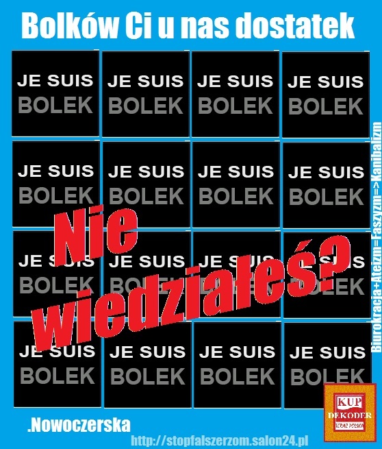 stopfalszerzom 231 BLOG Bolków jak grzybów stopfalszerzom Polityka Obserwuj notkę 2 25.02.2016 BLOG O mnie stopfalszerzom Kim jestem? Moje memy Nowości od blogera Udostępnij Udostępnij Skomentuj2 Polityka Zwrot w sprawie Sarkozy'ego. „Odsiadka zostawia ślad na każdym osadzonym” Redakcja Polityka Marsz Niepodległości nie tylko z Nawrockim i Konfederacją. Kolejny polityk potwierdza Redakcja Polityka Liderem sondaży jest KO, ale większość daje komu innemu szanse na władzę Redakcja Polityka Tusk w "Wyborczej". "Ziobro pójdzie siedzieć, jeśli..." Redakcja Komentarze Pokaż komentarze (2) Inne tematy w dziale Polityka #Francja Zwrot w sprawie Sarkozy'ego. „Odsiadka zostawia ślad na każdym osadzonym” To oni mieli okraść Luwr. Policja zatrzymała włamywaczy Trwa czarna seria we Francji. Skok w Langres tuż po Luwrze i Muzeum Historii Naturalnej #Marsz Niepodległości Marsz Niepodległości nie tylko z Nawrockim i Konfederacją. Kolejny polityk potwierdza Karol Nawrocki rozwiał wątpliwości. Ogłosił, czy pójdzie na Marsz Niepodległości Skiba nie celebruje Święta Niepodległości. "Służy do napaści na innych Polaków"