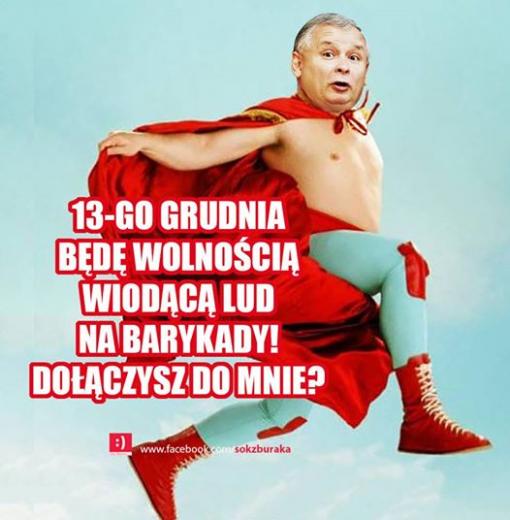 Pan Premier Jarosław Kaczyński aktywnie włączył się do kampanii promującej marsz 13 grudnia. W dość oryginalny sposób zachęca swoich fanów i sympatyków do udziału w tym narodowo-wyzwoleńczym zrywie.