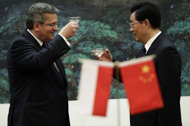 Dziś Chiny są już crazy, dżezy i cool jak mawiają MWzWM bo zwiedza je jaśnie nam panujący Bronisław Komorowski. Te same media, które na dźwięk słowa "Chiny" w ustach Kaczyńskiego dostawaly wręcz amoku dziś w tonie wręcz entuzjastycznym relacjonują wizytę Komorowskiego. Jeszcze parę dni temu nie było gorszego reżimu niż Chiny - no może Korea Północna była gorsza. A teraz funkcjonariusze frontu medialnego kochają wręcz Chiny wraz z Komorowskim. Sukces za sukcesem. Kolejne Himalaje dyplomacji. Strategiczne partnerstwo. W dzieło kochania Chin czynnie włączył się Prezydent. Dał się ucywilizować i nawet kieliszka jak widać na zdjęciu powyżej nie zakosił Przewodniczącemu Hu Jintao jak kiedyś Królowej Szwecji.