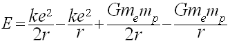 W modelu atomu wodoru przedstawionym przez Bohra, energia grawitacyjna elektronu w oddziaływaniu z protonem nie była uwzględniona i wzór powyższy miał postać: