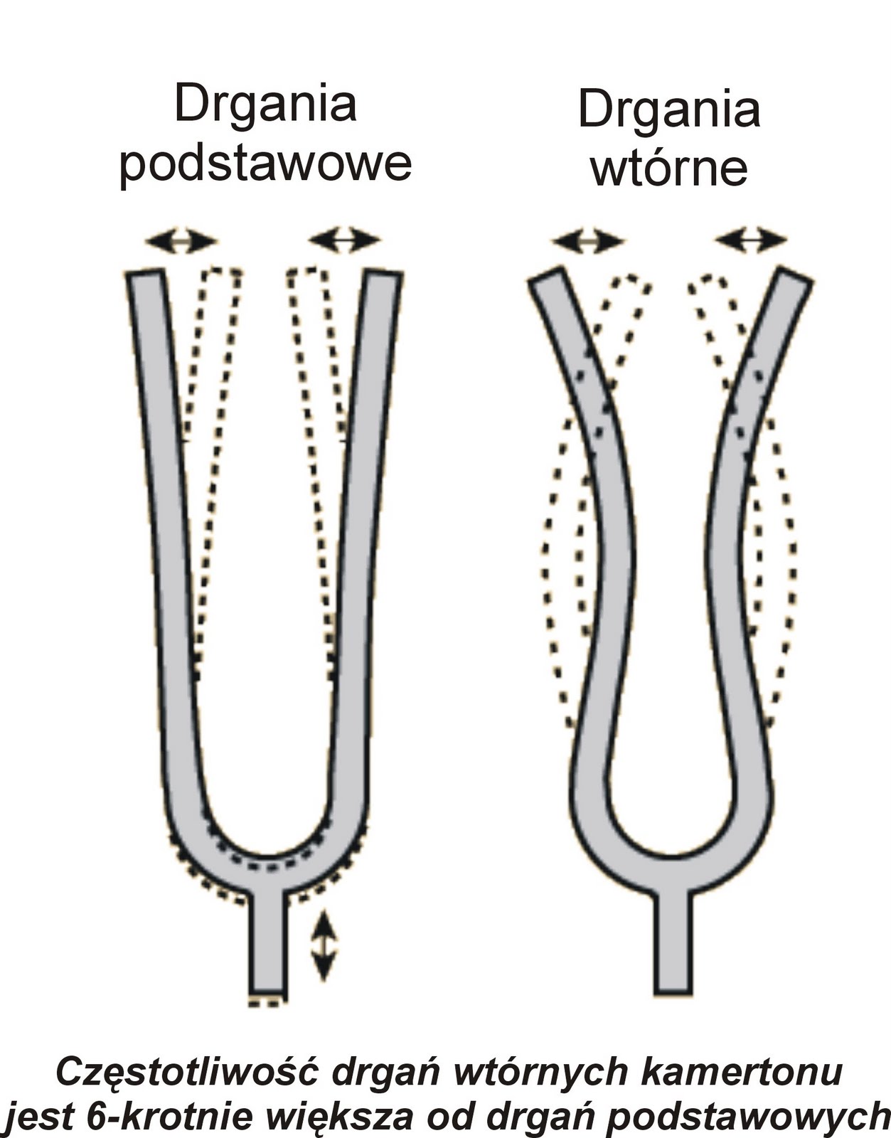 Oprócz drgań podstawowych kamerton wykonuje również drgania wtórne, szybko tłumione o czestotliwości około 6-krotnie większej. W przypadku wyliczonej częstotliwości podstwaowej dla mózgu, częstotliwośc wtórna wynosiłaby około 90 tys. Hz.