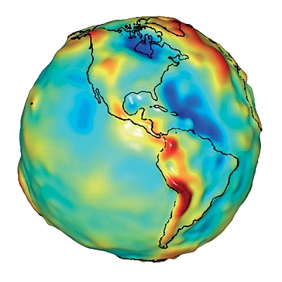 (Obraz anomalii grawitacji Ziemi zarejestrowany przez sondę GRACE.)