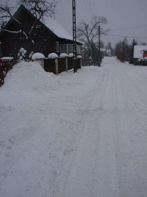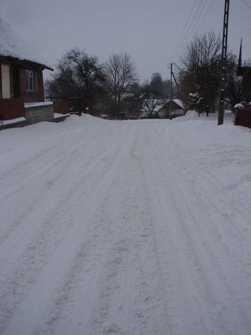 Dzisiejszy ranek, odśnieżona droga przez Wojnowo. Podjazd pod górkę.